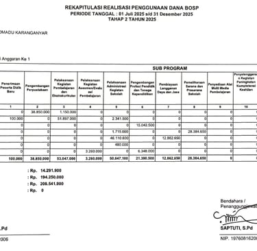 Laporan Penggunaan dana BOSP Tahap 2 SLB Negeri Colomadu berikut :